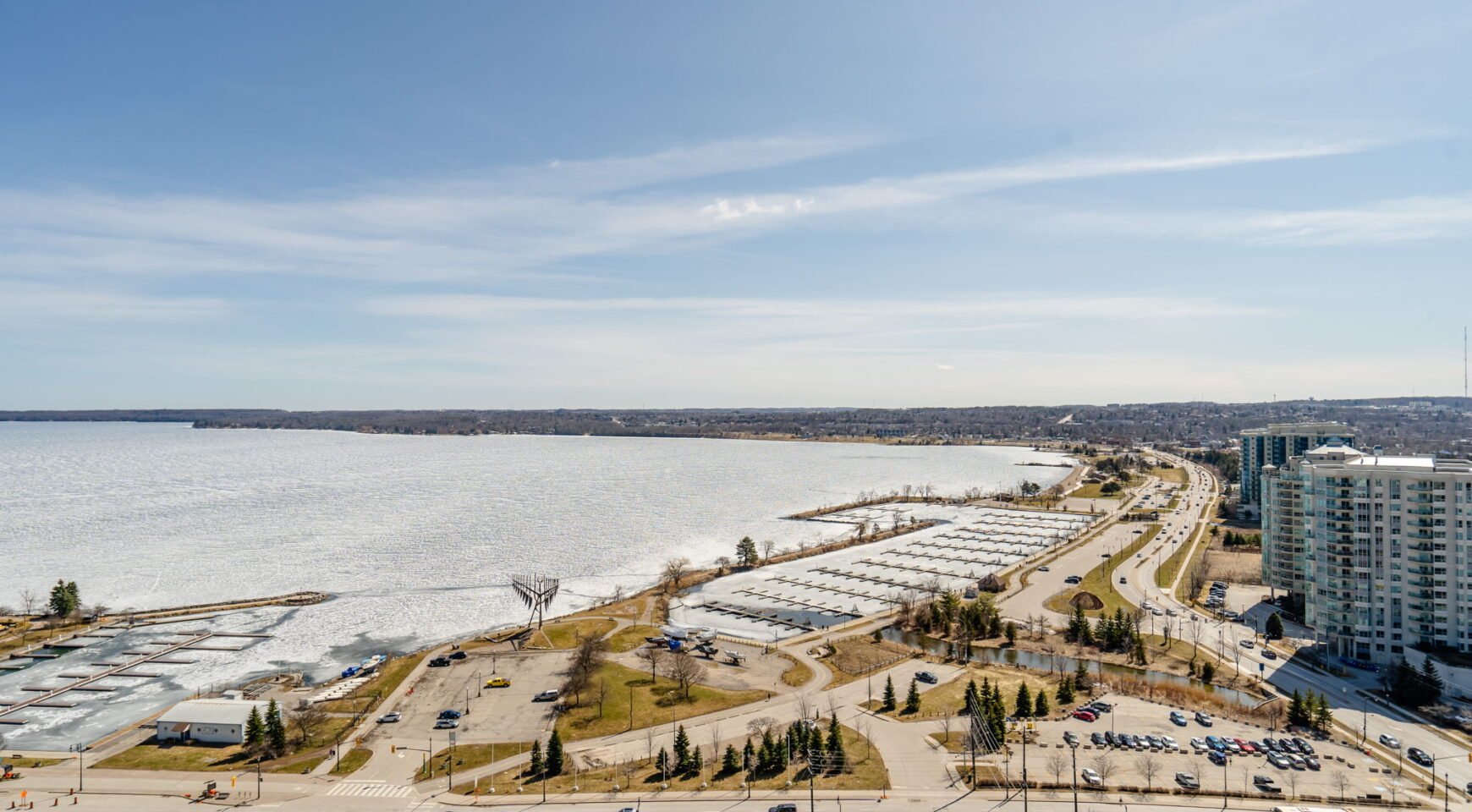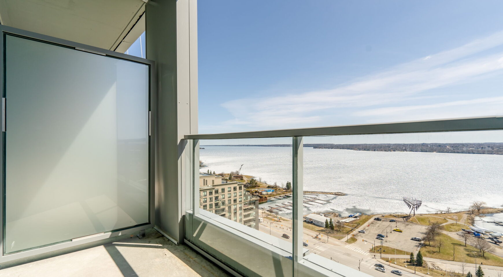 Discover lakeside luxury in downtown Barrie! This 1-bedroom plus den, 2-bathroom suite at Debut Waterfront Condos offers breathtaking south-facing views of Kempenfelt Bay. With an open-concept living space, the home features 9-ft ceilings, floor-to-ceiling windows, and wide-plank engineered hardwood flooring. The functional kitchen is equipped with custom cabinetry and stone countertops. The den is ideal for a home office, making this suite perfect for professionals. The spacious primary bedroom enjoys water views, and an ensuite bathroom with a frameless glass shower and modern finishes. Coming soon – enjoy resort-style amenities including an infinity plunge pool, fitness centre, yoga studio, business centre, and 24-hour concierge service. Steps from the waterfront, Centennial beach, trails, parks, shops, great restaurants, and public transit, including Allandale GO Station.